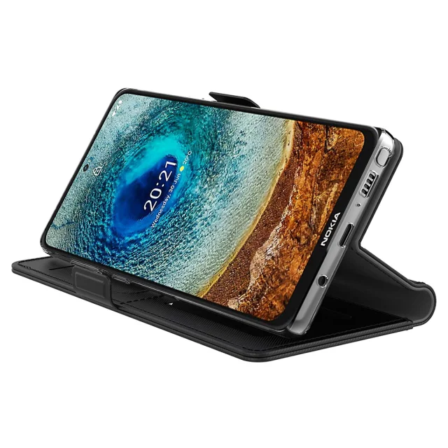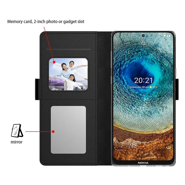 Vgrajena torbica za telefon iz PU usnja z ogledalom za Nokio G42, protiprašno odporen pokrov stojala za telefon z držalom za kartico