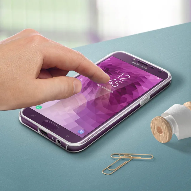 Vgrajena zašcitna lupina: prilagodljiva sprednja in toga zadnja stran - ultra prozorna str. Samsung Galaxy J4