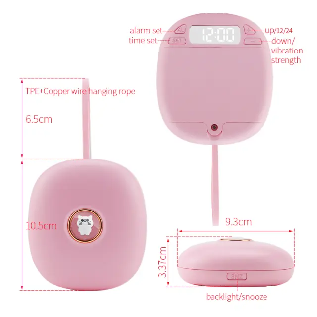 Vibrirajoča budilka s funkcijo dremeža Pink