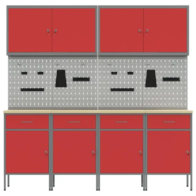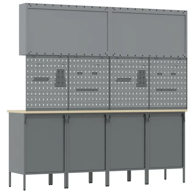 Ta industrijska delovna omara z predaloma in vrati združuje trdno jekleno zasnovo in eleganten leseni izgled, kar jo naredi za fantastičen dodatek v vsaki delavnici ali garaži. Njene dimenzije nudijo obilo prostora za ureditev orodij, kar omogoča učinkovito delovno okolje za resne DIY navdušence in profesionalce.