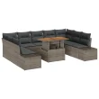 Ta 10-delni set za vrtno jedilnico s blazinami je odlična mešanica stila in praktičnosti, zasnovan da popestri vaše zunanje trenutke sprostitev in obedovanja. Njegov sodoben izgled, narejen iz elegantnega sivega poliratana, se čudovito poda vsaki terasi ali balkonu in je idealen za druženje ali samo uživanje na soncu.