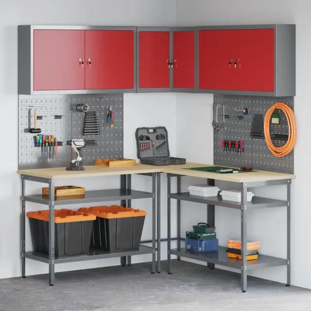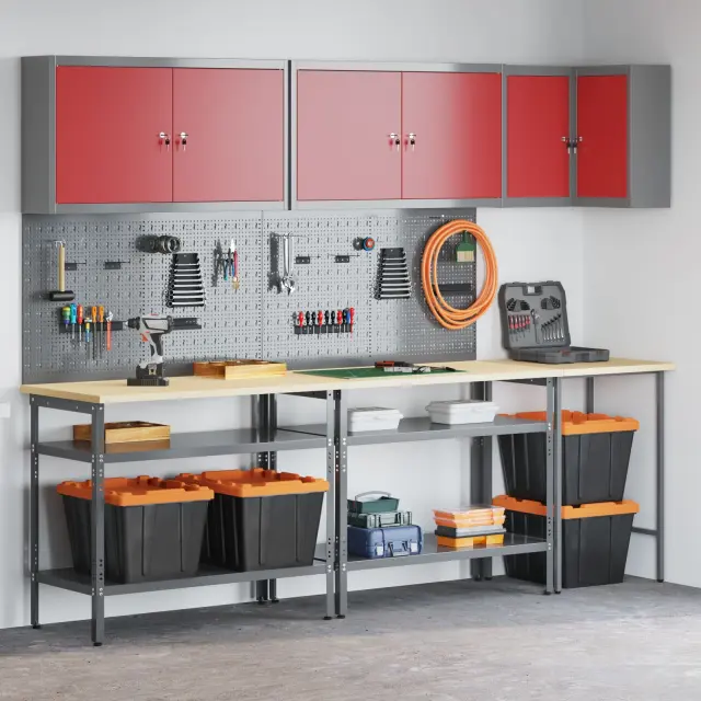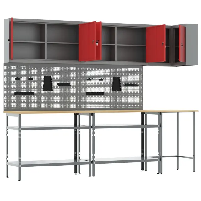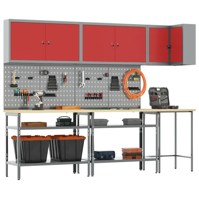 Ta nastavitev nastavljive kotne delovne mize je prava revolucija za tvojo delovno površino z modernim stilom in uporabnimi funkcijami. Močan jekleni okvir in gladka lesena površina ti nudita trdno podlago za razne naloge, odlična za vsakogar, od DIY navdušencev do izkušenih strokovnjakov.