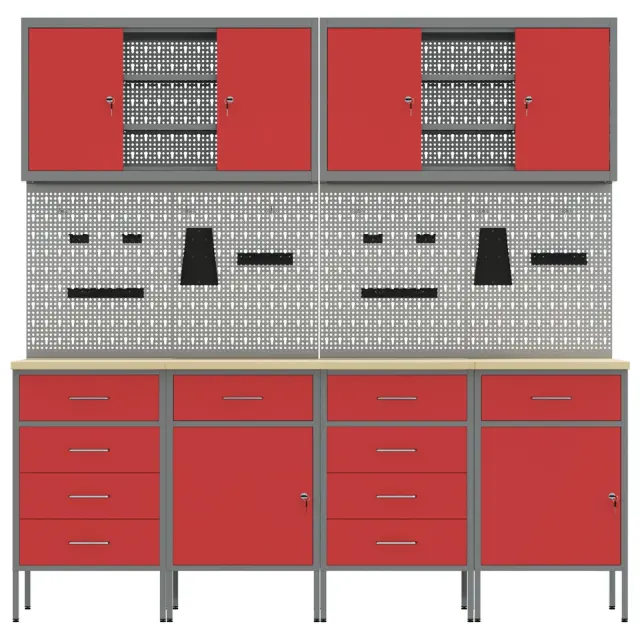 Ta industrijska delovna omara je narejena za praktično shranjevanje v kateri koli delavnici ali garaži. S svojo trdno gradnjo in kul rdeče-sive barve, je stilna in funkcionalna.