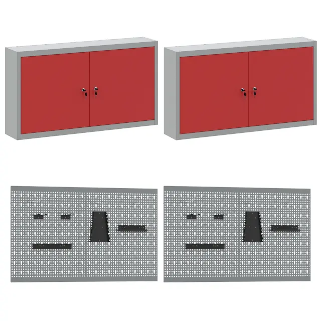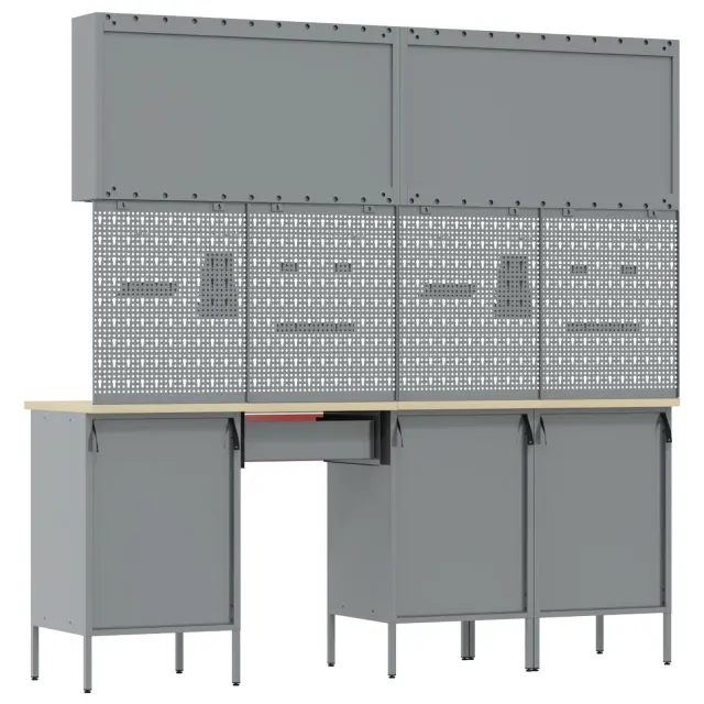 Ta industrijska delovna omara združuje stil in funkcionalnost za vsako garažo ali delavnico. S svetlo rdečo in sivo zasnovo povezuje močan jeklen okvir z leseno površino iz inženirskega lesa, kar ustvarja živahno, a profesionalno delovno okolje, ki ustreza tako izkušenim obrtnikom kot tudi DIY navdušencem.