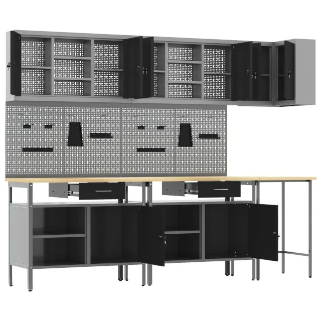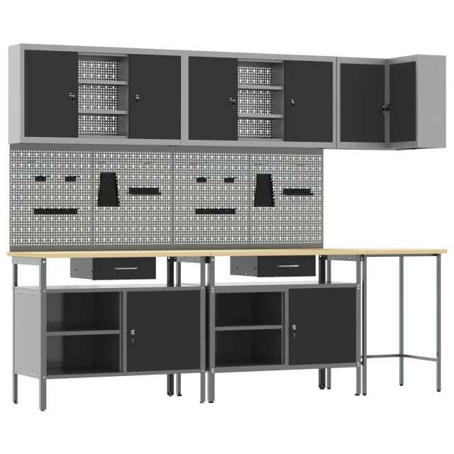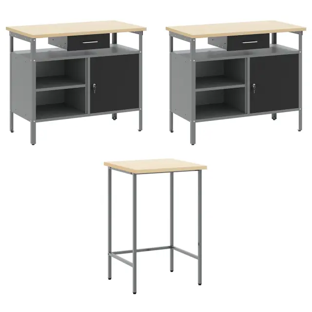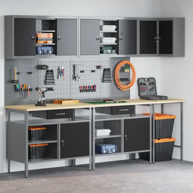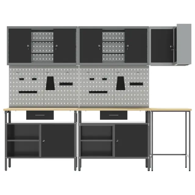Ta kotna miza doda lep industrijski pridih tvoji garaži ali delavnici. Združuje slog in praktičnost. Eleganten sivi zaključek in videz lesa se odlično prilegata, če uživaš v urejenem, a cool vzdušju.