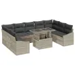 Ta 10-delna vrtna sedežna garnitura je ravno prava za ustvarjanje udobnega zunanjega salona. Pojača funkcionalnost in sodoben slog. Svetlo sivi poli ratan ji daje eleganten pridih, medtem ko so blazine polnočne modre barve super za terase, balkone in vrtove.