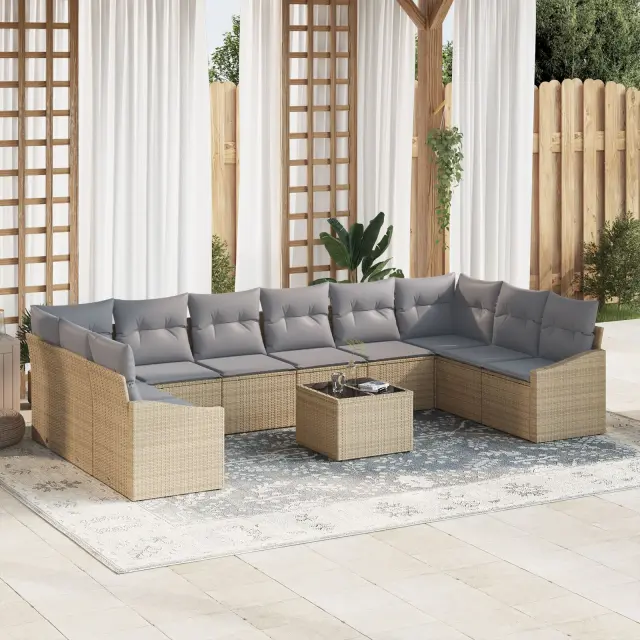 Ta 11-delni set dvorišne jedilnice je stilska in priročna izbira za uživanje na prostem v sončnih dneh. Njegova sodobna zasnova prinaša svežino vsakemu balkonu ali sončni sobi, omogoča pa ti lepo mesto za družinska srečanja ali manjša druženja.