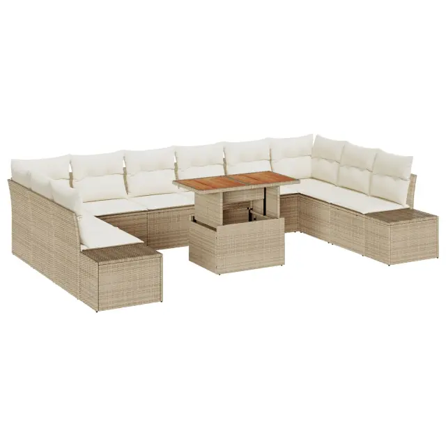 Ta super 11-delni zunanji jedilni set z blazinami združuje stil in funkcionalnost, kar je idealno za vsak zunanji dogodek. Narejen iz trpežnega ratana in mehkega poliestra, bo odprl prostor na tvojem vrtu, patio ali balkonu in ustvaril prijeten kotiček, kjer lahko družina in prijatelji uživajo ob obrokih in se sprostijo.
