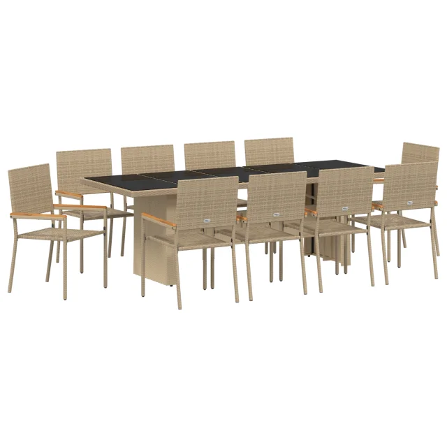 vidaXL 11 delni vrtni jedilni set bež poli ratan