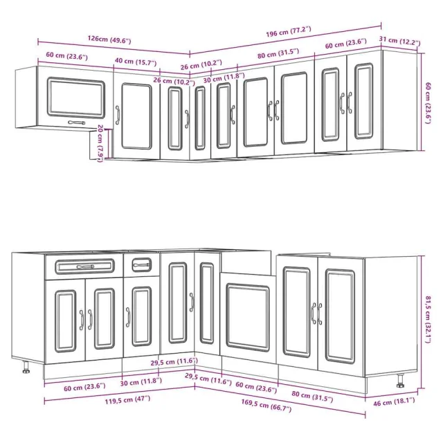 Ta 11-delni komplet kuhinjskih omaric z elegantnim dizajnom bo optimiziral prostor v vaši kuhinji in nudil veliko prostora za shranjevanje vaših osebnih stvari!