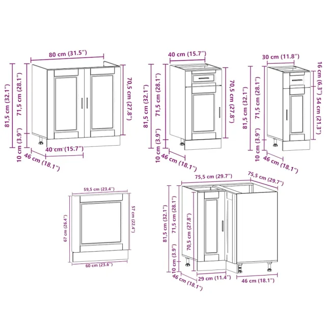 Ta 11-delni komplet kuhinjskih omaric z elegantnim dizajnom bo optimiziral prostor v vaši kuhinji in nudil veliko prostora za shranjevanje vaših osebnih stvari!