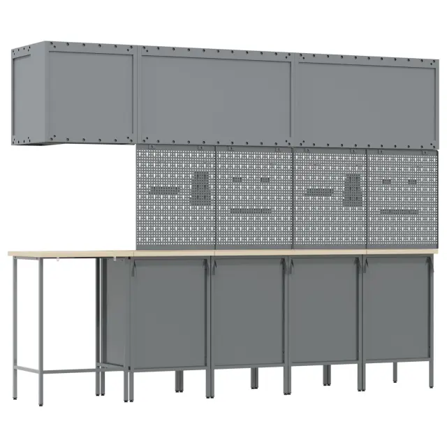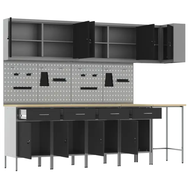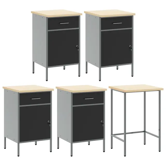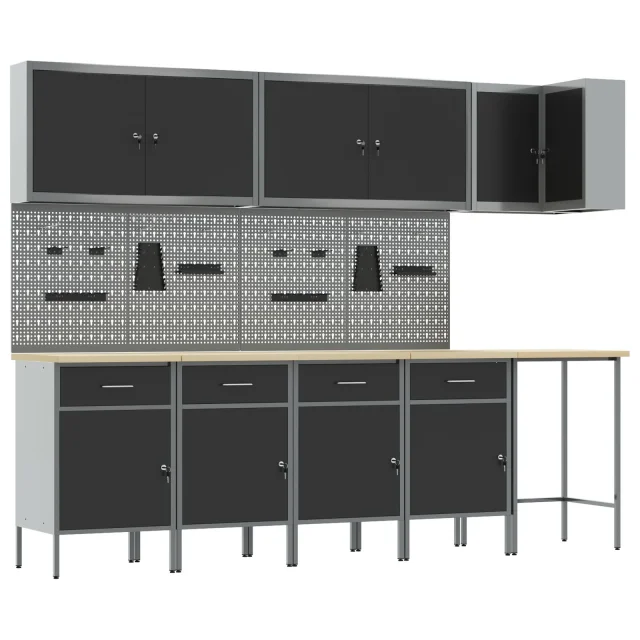 Ta industrijska večnamenska delovna omara je super izbira, če iščeš stil in praktičnost. Njena rustikalna lesena površina se super ujema z robustnim kovinskim okvirjem, kar ti omogoča urejen videz in dobro organizacijo orodja.