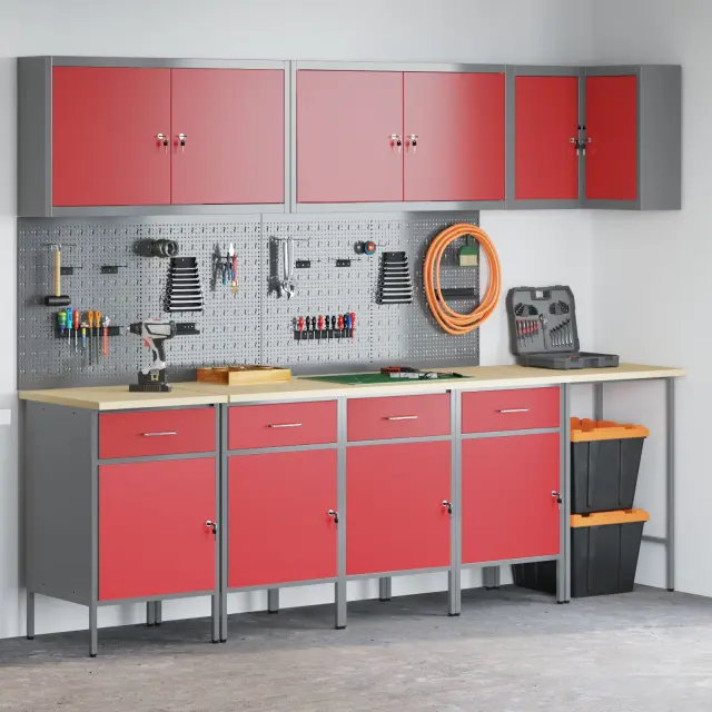 Ta Industrijska večnamenska delovna omarica je fantastična izbira za shranjevanje, idealna za vsako garažo ali delavnico. Je robustna in narejena iz jekla ter inženirskega lesa, kar ji daje funkcionalnost ob kul industrijskem videzu.