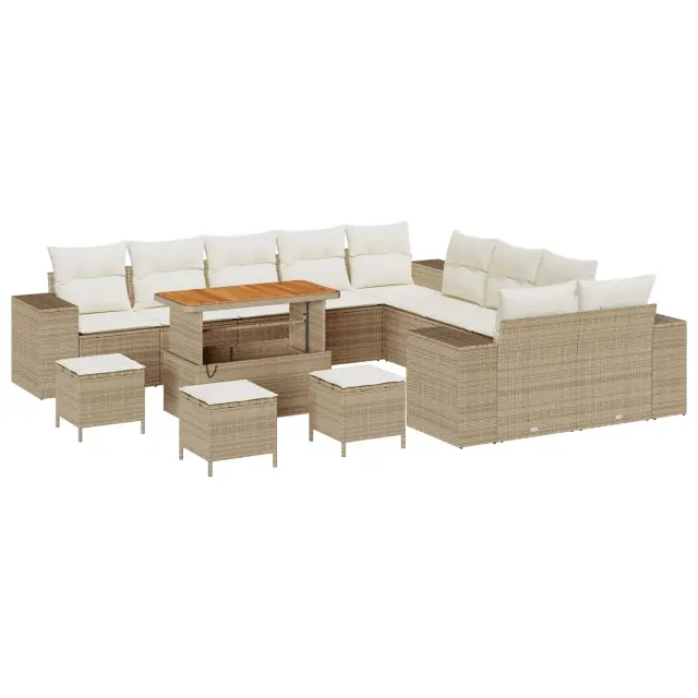 Ta prostoren vrtni kavč je pravi dodatek za vsak zunanji prostor, ker združuje stil in udobje. Narejen iz trdnega poli ratana, ima mehke blazine, ki vas pomirijo in preoblikujejo vaš balkon ali vrt v idealen prostor za sprostitev in druženje.