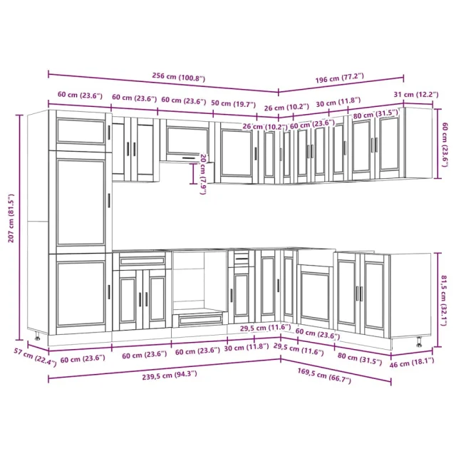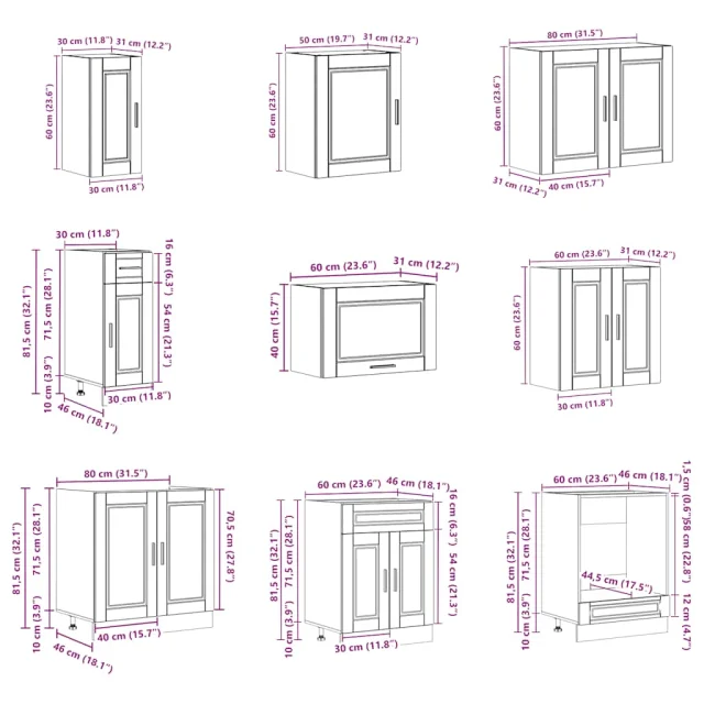 Ta 14-delni komplet kuhinjskih omaric z elegantnim dizajnom bo optimiziral prostor v vaši kuhinji in nudil veliko prostora za shranjevanje vaših osebnih stvari!