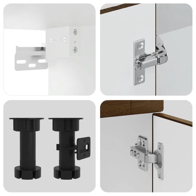 • Nastavljive noge: Spodnje omarice imajo nastavljive noge, ki jih lahko prilagodite po višini, da ustrezajo vaši kuhinjski postavitvi.