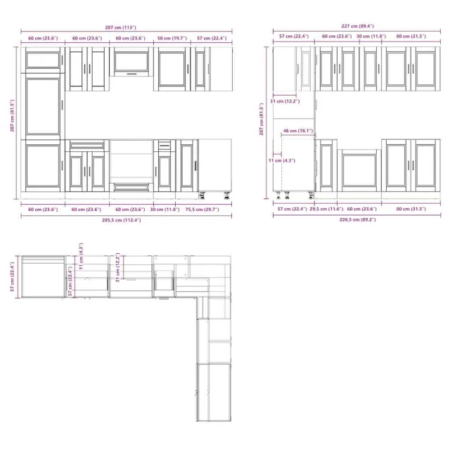 • 1 x kuhinjska kotna omarica: 75,5 x 75,5 x 81,5 cm (Š x G x V)
