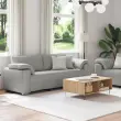 Ta moderna sofa za 3 osebe združuje stil in praktičnost, kar ji daje čar v vaši dnevni sobi. Njena oblazinjenost v oblaku sivo je ne le estetska, ampak tudi udobna za druženje s prijatelji ali preprosto lenarjenje.