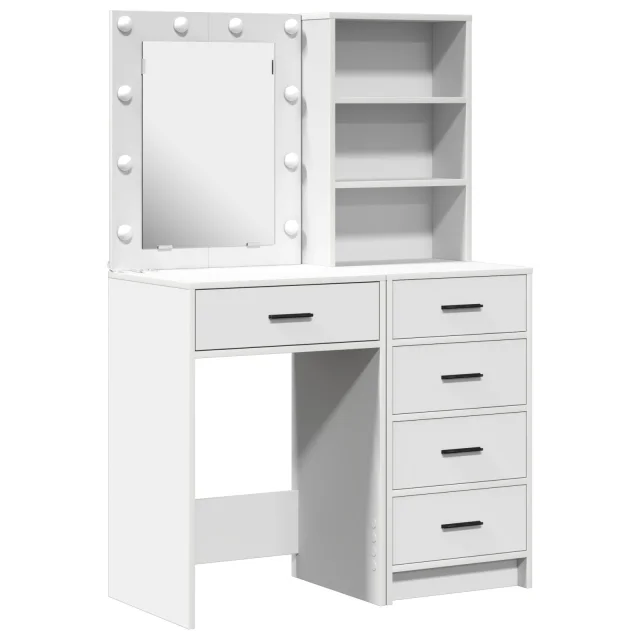 Ta toaletna miza je lepo zasnovan kos pohištva, posebej za osebno nego in vsakodnevno ličenje. S sodobnim dizajnom in gladko belo obdelavo iz inženirskega lesa, skupaj z ravnim ogledalom, ustvari popoln prostor za vsako spalnico ali ličilno sobo.