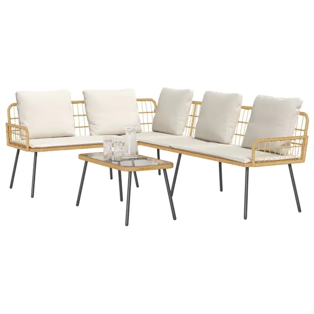 Ta velika sodobna ratan sedežna garnitura je odličen način za nadgradnjo vašega zunanjega prostora za sprostitev. Njena elegantna zasnova in udoben občutek sta must-have. S svojo naravno rjavo barvo in prostorno zasnovo ustvarja prijeten kotiček za prijatelje in družino, ki uživajo v lenobnih popoldnevih ali toplem večerih na prostem.