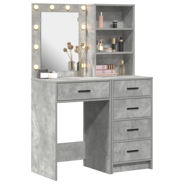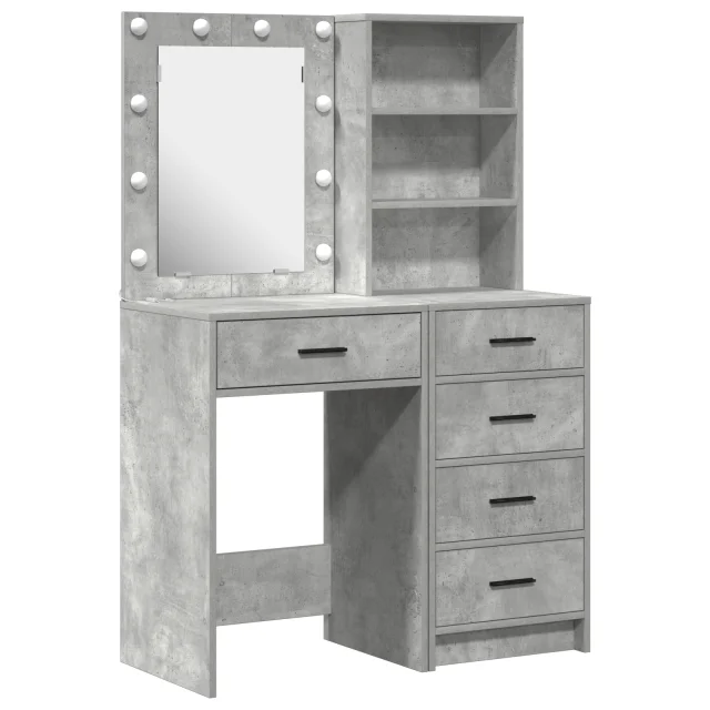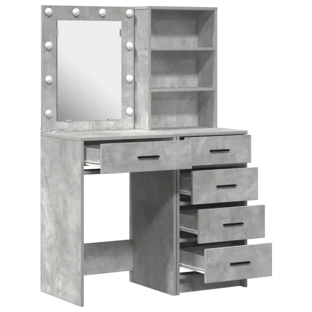 vidaXL 2-delni set toalete z LED betonskega sivega inženirskega lesa