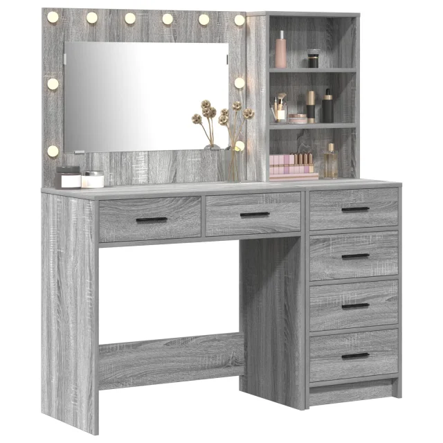 vidaXL 2-delni set toaletne mize z LED sivo sonoma inženirskega lesa
