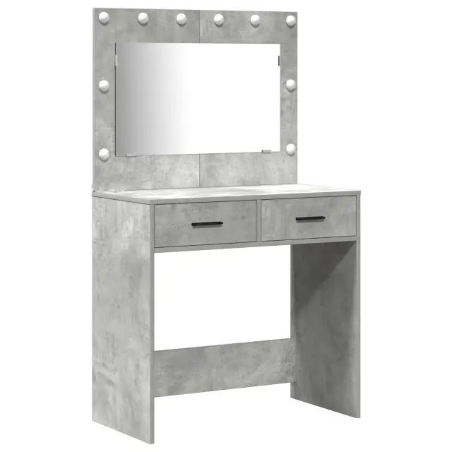 vidaXL 2-delni set toaletne mizice z LED lučjo, sivo betonski inženirski les