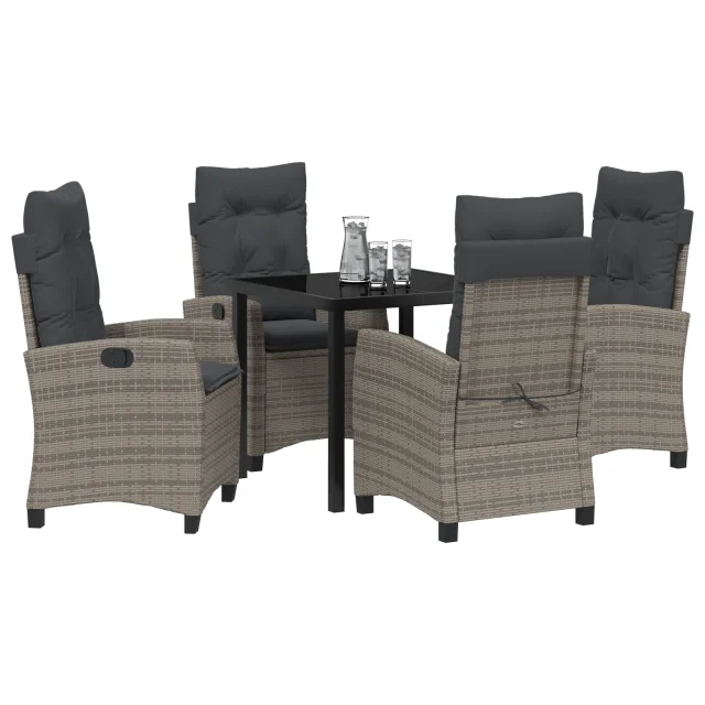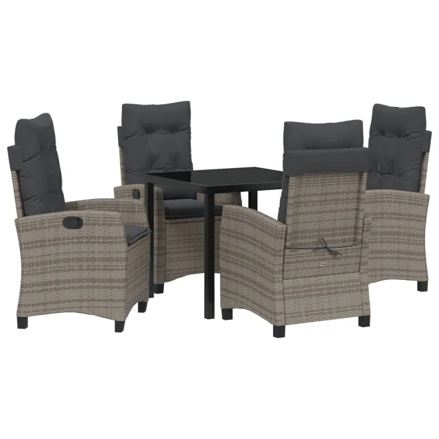 vidaXL 2-delni vrtni jedilni set z blazinami, sivi poli ratan