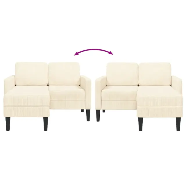 vidaXL 2-sedežni kavč z ležiščem v obliki črke L kremast 125 cm platno