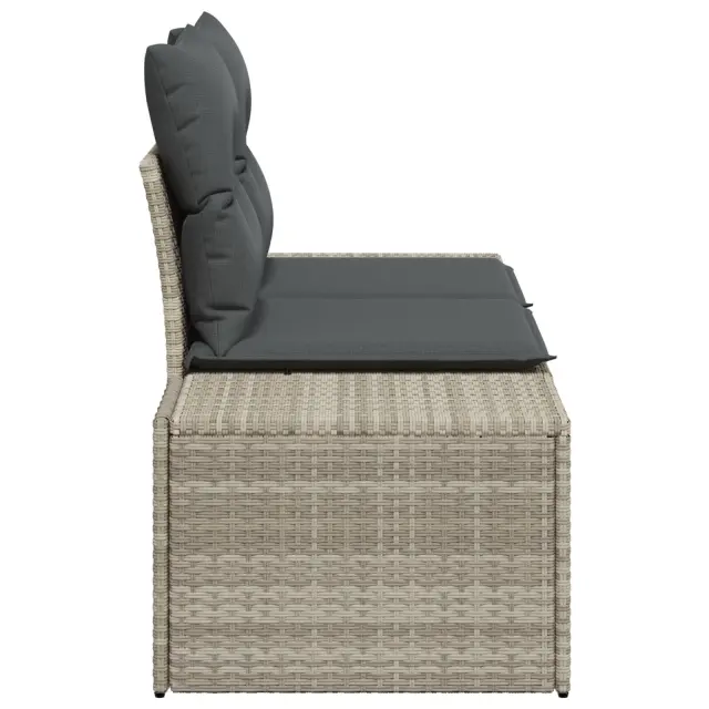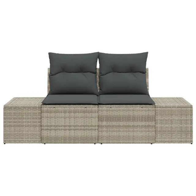 Ta zunanji kavč združuje stil in praktičnost, kar ga naredi super izbiro za vrtove in terase. Njegova elegantna svetlo siva zasnova s mehko sivimi blazinami ustvari prijetno vzdušje za druženje ali preprosto lenarjenje na prostem.