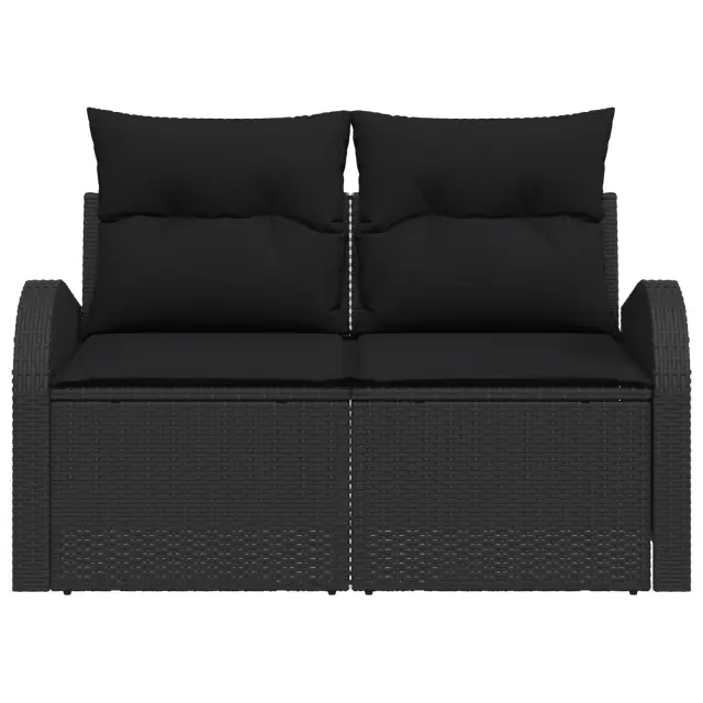 Ta vrtni kavč združuje sodoben dizajn s prijetnimi funkcijami, kar ga dela odlično izbiro za balkone in terase. S svojim elegantnim črnim poli ratan okvirjem in mehkimi črnimi blazinami, je idealen za sproščena druženja ali le uživanje na prostem, kar te vabi, da se sprostiš ob uživanju zunaj.