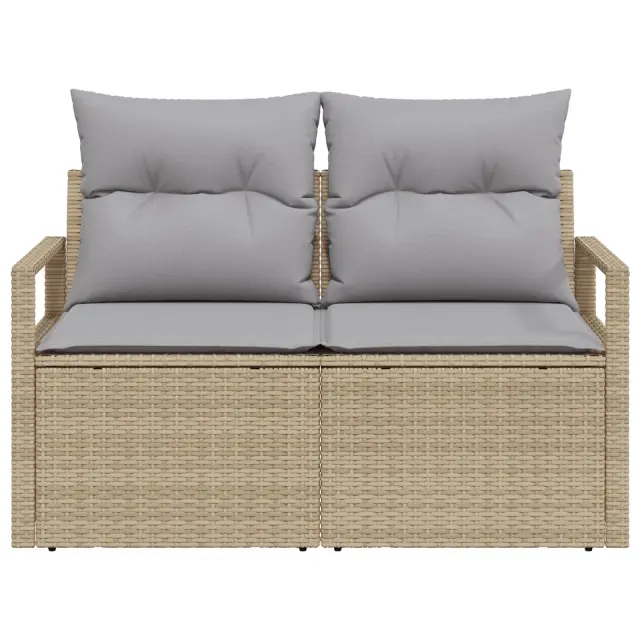 Ta zunanji kavč ima moden videz, ki združuje udobje in praktičnost. Bež in siva barva se lepo prilegata različnim zunanjim slogom in omogočata udobno sedenje za družino in prijatelje.