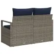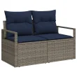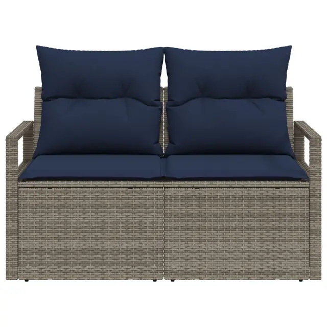 Ta zunanji kavč nudi udobno sedenje za dva in ima šik style, ki izboljša vsak balkon ali teraso. Gladek siv poly rattan okvir, v kombinaciji z bogatimi mornarsko modrimi blazinami, lepo izgleda in te tudi vabi k sprostitvi. Idealno za družabna srečanja ali mirne trenutke na prostem.