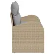 Ta vrtni kavč združuje moderno estetiko in praktične funkcije, kar ga dela za perfektno izbiro za vsak zunanji prostor. S svojim šik bež poli ratan okvirjem in udobnimi sivimi vzglavniki, je zasnovan za sprostitev in stilna druženja, pripravljen te povabiti, da se udobno namestiš.