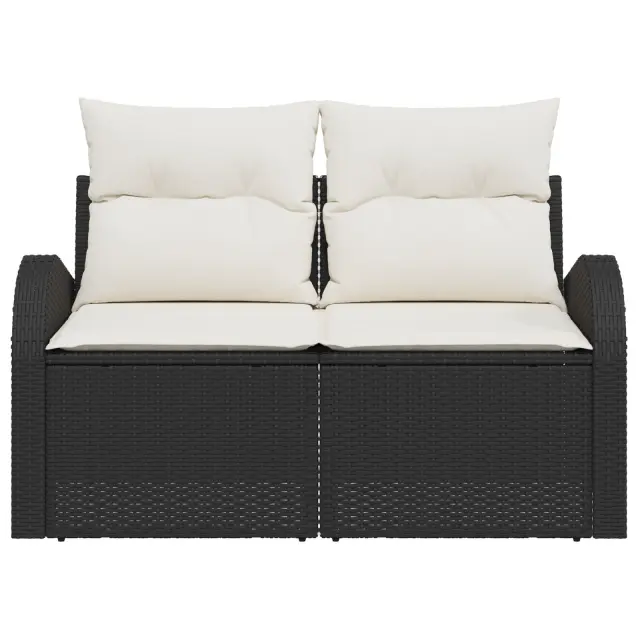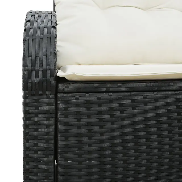 Ta vrtni kavč prinaša moderno točko in praktičnost tvojim zunanjim prostorom, kar ga dela odlično izbiro za balkone ali vrtove. Z elegantnim črnim poli ratan okvirjem in mehkimi kremnimi blazinami, gre za sprostitev, medtem ko ponuja praktično shranjevanje za tvojo zunanjo opremo.