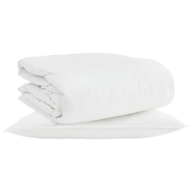 • Vključene komponente: Set vsebuje obsežno prevleko in ujemajočo se blazino, oboje zasnovano za optimalno udobje. Blazina, napolnjena s perjem, se prilagaja tvoji glavi in vratu, kar ponuja podporo in sprostitev, medtem ko te prevleka objame v lahkotnosti.