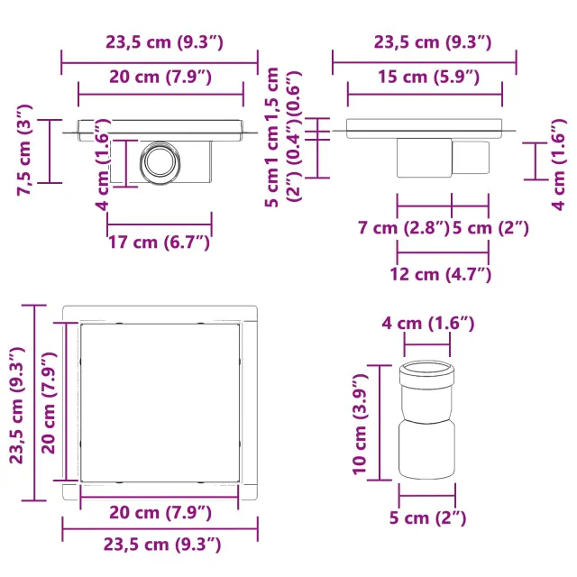 vidaXL 2 v 1 odtočna naprava srebrna 20 x 20 cm Nerjaveče jeklo 304