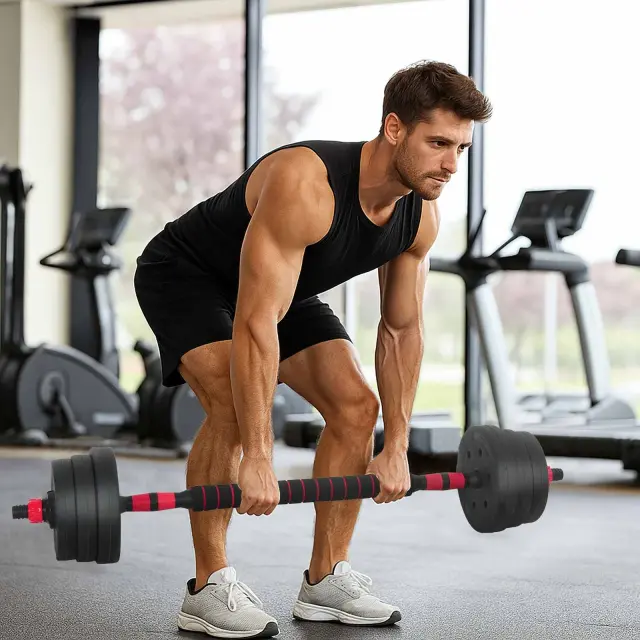 vidaXL 2-v-1 set dumbbelov Črna in rdeča 121 x 19,5 x 19,5 cm