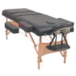 Komplet, ki vključuje zložljivo 3-consko masažno mizo, stolček za masiranje ter okroglo in polkrožno valjasto blazino, bo idealen za profesionalno in zasebno uporabo. Masažna miza in stolček imata trden lesen okvir za vzdržljivost in sta oblazinjena v visokokakovostno umetno usnje. Luksuzen, izjemno debel sedež stolčka in ležalna površina mize, vzglavnik in stranski nasloni za roke nudijo izjemno udobje. Naslon za glavo, naslon za hrbet in sprednja polica za roke mize so nastavljivi, prav tako višina mize, kar uporabniku omogoča udobno ležanje, maserju pa izbiro želene delovne višine. Stolček se enostavno zloži za shranjevanje in transport Dve priloženi blazini različnih oblik se lahko uporabljata za različne namene. Lahko ju namestite pod kolena, gležnje ali spodnji del trebuha za podporo ali položaj. Masažno mizo lahko enostavno zložite in shranite v prenosno torbo v obliki kovčka, kar olajša prenašanje in shranjevanje. Torba za prenašanje je priložena.Barva: ČrnaMaterial: Umetno usnje (100 % PVC), trden lesMasažna miza:Velikost (z naslonjaloma za glavo in roke): 221 x 90 cm (D x Š)Velikost (brez naslonjal za glavo in roke): 193 x 67 cm (D x Š)Prilagodljiva višina od 65 do 87 cmDebelina pene: 10 cmMaksimalna obremenitev: 130 kgRazkošen, debelo podložen ležalni predel, naslonjalo za glavo in stranska naslonjala za rokeS prilagodljivo sprednjo polico za rokeZ nastavljivim naslonjalom za glavoPrilagodljivo naslonjalo za hrbetSnemljivo naslonjalo za glavo, stranska naslonjala za roke, blazina za obraz in sprednja polica za rokeZložljivo za enostavno shranjevanje in prenašanjeOdporna na razkužila in masažna oljaPriložena torba za prenašanjePreprosto sestavljanjeStolček za masiranje:Dimenzije: 35 x 35 x 52 cm (Š x G x V)Debelina sedeža: 12 cmZ luksuznim, izjemno debelim sedežemValjasta blazina:Material: Umetno usnje (100 % PVC), penaDimenzije: 15 x 67 cm (Premer x D)Paket vsebuje:1 x 3-conska zložljiva masažna miza1 x Zložljiv masažni stolček1 x Okrogla valjasta blazina1 x Polokrogla valjasta blazinaTkanina: Bombaž: 10%, Poliester: 30%, Poliuretan: 60% 110157