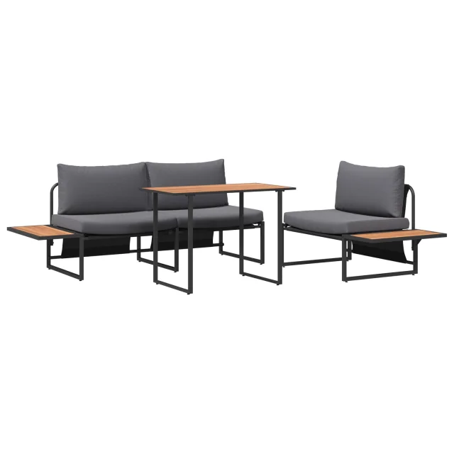 Ta 3-delni zunanji jedilni set združuje stilsko sodobno zasnovo s funkcionalnostjo. Idealno za uporabo znotraj ali zunaj. Njegov elegantni videz in klasična barva spremenita vsako balkonsko ali vrtnarsko območje v trendovsko druženje za družino in prijatelje, kjer se lahko sproščajo.