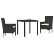 vidaXL 3-delna vrtna jedilna garnitura z blazinami Črna poli ratan