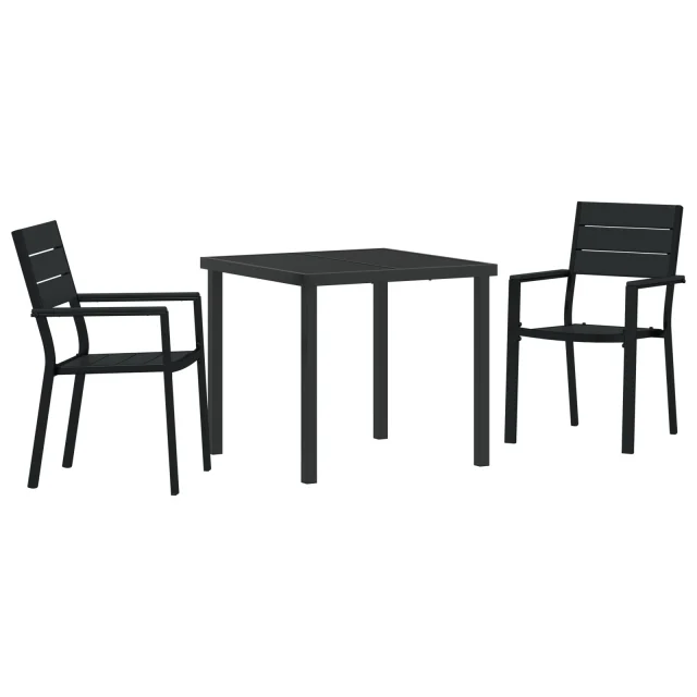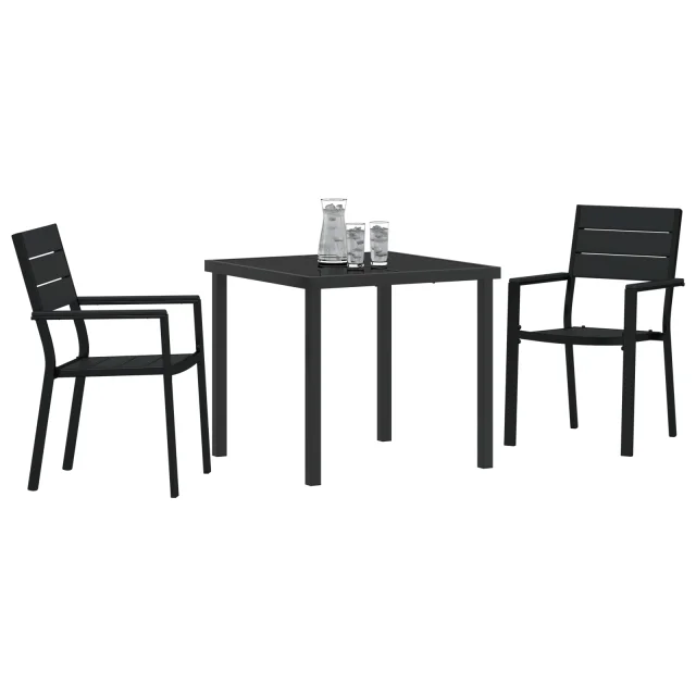 Ta vidaXL vrtnica jedilna garnitura je super dodatek za vsak zunanji prostor, saj vam prinaša prostor za sprostitev ali uživanje obrokov s prijatelji in družino. S svojim elegantnim črnim dizajnom iz HDPE, ki posnema les, dobite dva stola in trdno mizo, kar je idealno za terase, balkone ali vrtove.