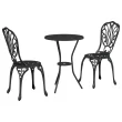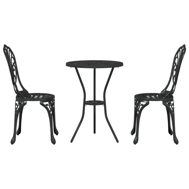 Ta kompaktna okrogla jedilna garnitura za 2 je odlična za uživanje v obrokih zunaj, bodisi na prijetnem balkonu bodisi v udobnem kotičku vrta. Zgrajena iz trdnih materialov, ima garnitura elegantno črno barvo, ki združuje vzdržljivost in stil. Okrogla miza ustvarja prijetno vzdušje, kar je odlična izbira za popivanje kave s prijateljem ali za organizacijo majhne zunanje zabave.