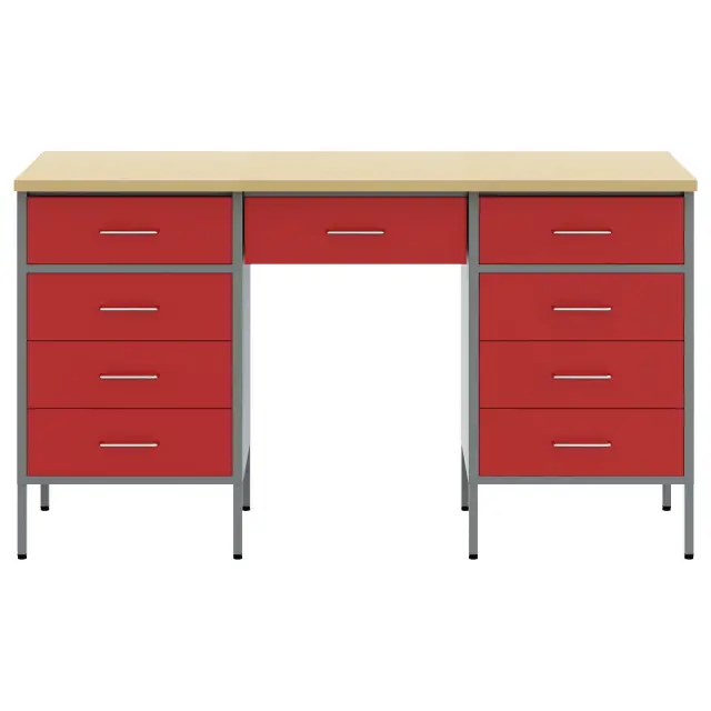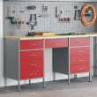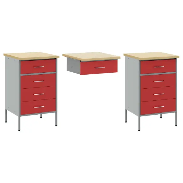 Ta industrijski delovni kabinet je stiln in praktičen, obvezna stvar za vsako garažo ali delavnico. Trdna rdeča in siva jeklena konstrukcija skupaj s kvalitetno delovno površino iz inženirskega lesa ustvarja funkcionalno in lepo delovno območje.