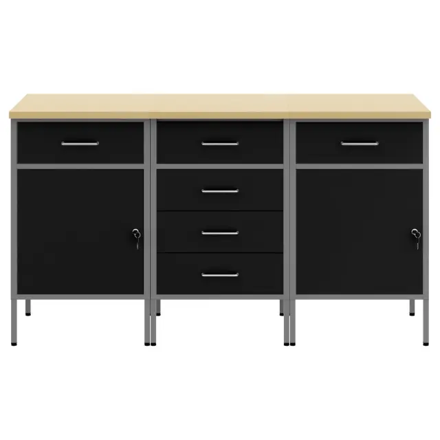 Ta delovni kabinet je super način shranjevanja, če želiš urejen in praktičen delovni prostor. Narejen je iz vrhunskega jekla in inženirskega lesa ter ima industrijski izgled s sodobnimi teksturami, kar ga dela idealnega za garaže in delavnice.