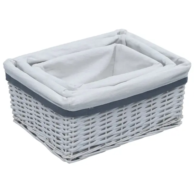 Košare za organiziranje iz vrbe ter so čvrste in vzdržljive. Pravokotne škatle so vsestranske za vsakodnevno organiziranje, največja škatla s pokrovom pa je lahko košara za perilo, ki nudi dovolj prostora za vaše perilo. Atraktiven tkan slog kompletu dodaja naravni čar.