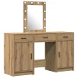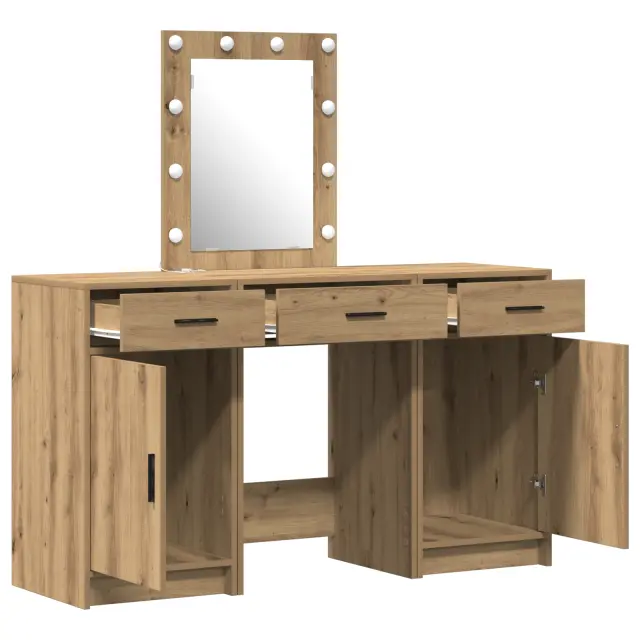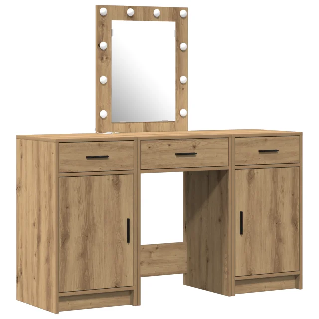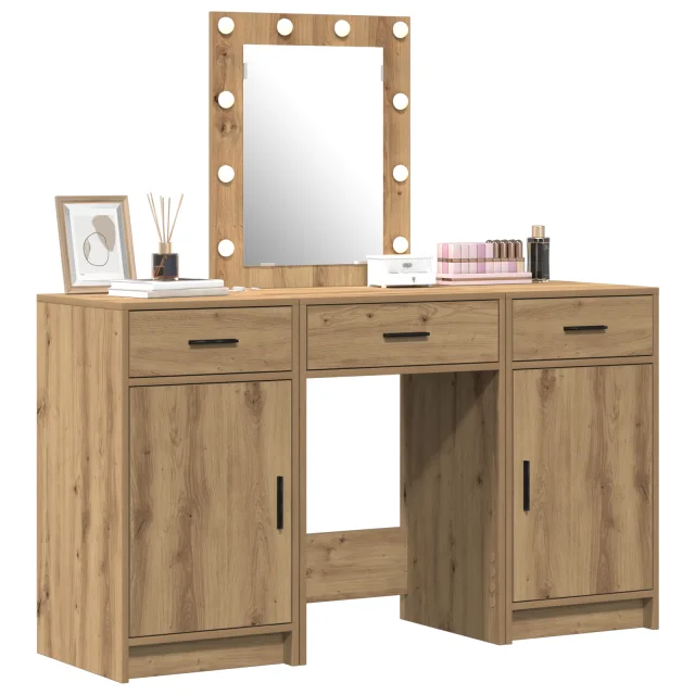 Ta moderna toaletna miza, izdelana iz artizanskega hrasta, lepo povezuje stil in praktičnost, kar jo dela popolno izbiro za vsako spalnico. Eleganten dizajn s gladko obdelavo in čistimi linijami ustvarja prijetno vzdušje, hkrati pa nudi prostor za ličenje in nego.