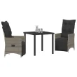 vidaXL 3-delni komplet vrtnarskih jedilnih stolov s sivimi blazinami iz poli ratana