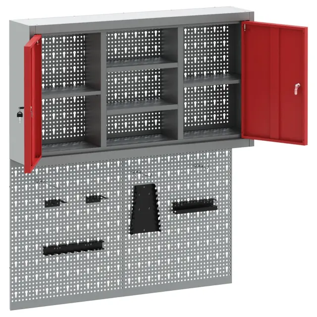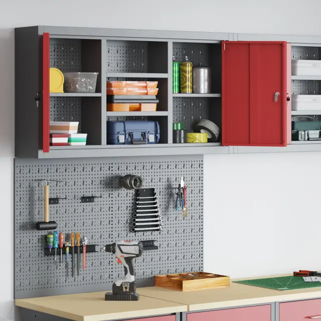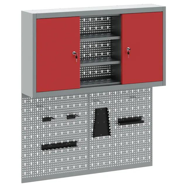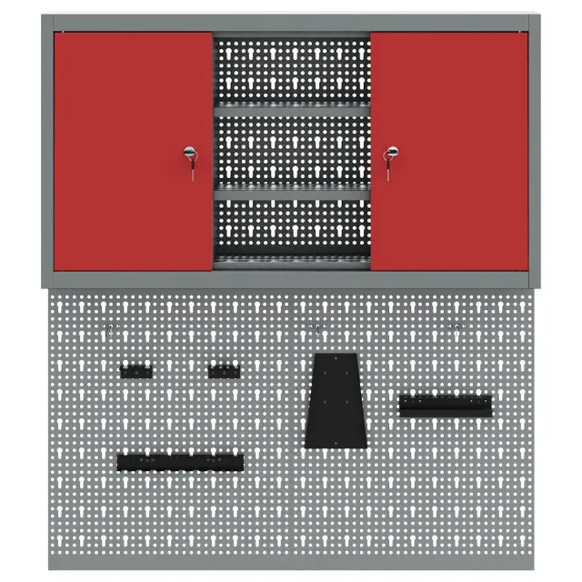 Ta industrijska orodna omara in pegboard komplet je trdna rešitev za vsakogar, ki želi imeti urejen sistem shranjevanja v delavnicah, garažah ali ustvarjalnih prostorih. Narejena je iz trpežnega jekla v pametni sivi in rdeči barvi, ta sistem ne le drži težke stvari, ampak ima tudi nastavljive police in kaveljčke za vse, kar potrebuješ.