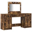 Ta toaletna mizica z ogledalom in LED osvetlitvijo je odličen kos za moderne spalnice, ki združuje izgled in uporabnost. Izdelana iz vrhunskega inženirskega lesa z dimljenim hrastovim finišem, resnično obogati tvojo sobo in ponuja odličen prostor za ličila in nego. To je obvezna stvar za tiste, ki želijo eleganco in praktičnost v svojem prostoru.